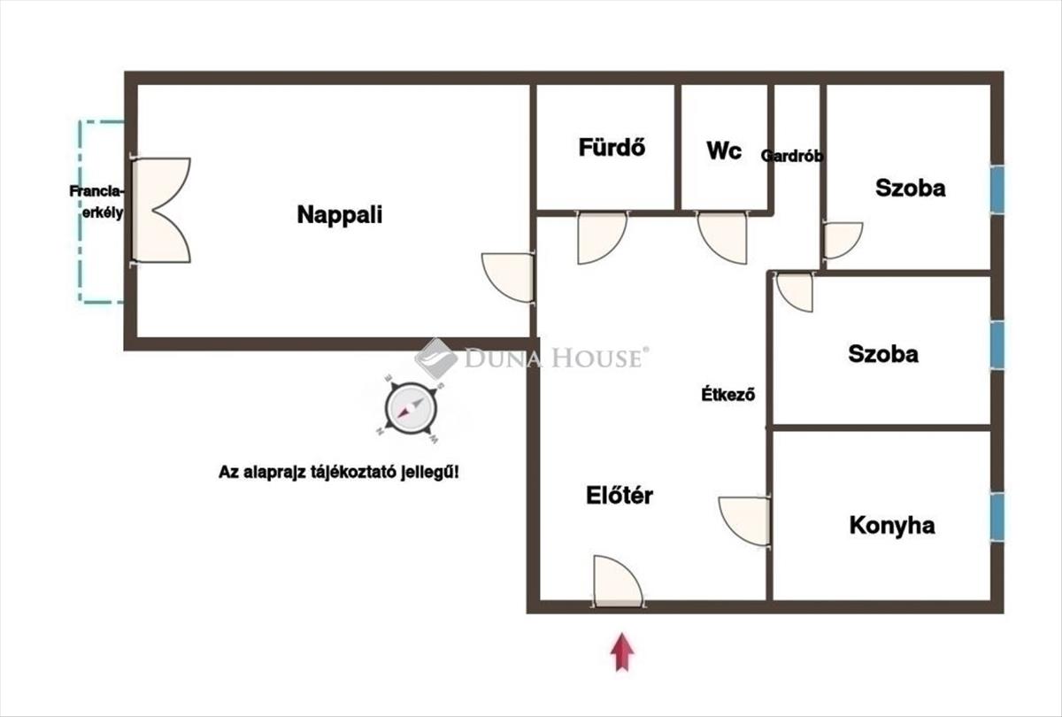 Nappali plusz 2 hálószoba elosztású, a nagyméretű előtér pedig közös étkezések számára is alkalmas.