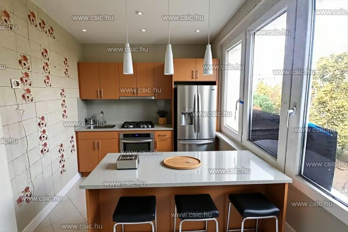 A világos konyha, a külön wc, valamint a beépített loggia mind növeli a mindennapi kényelmet.