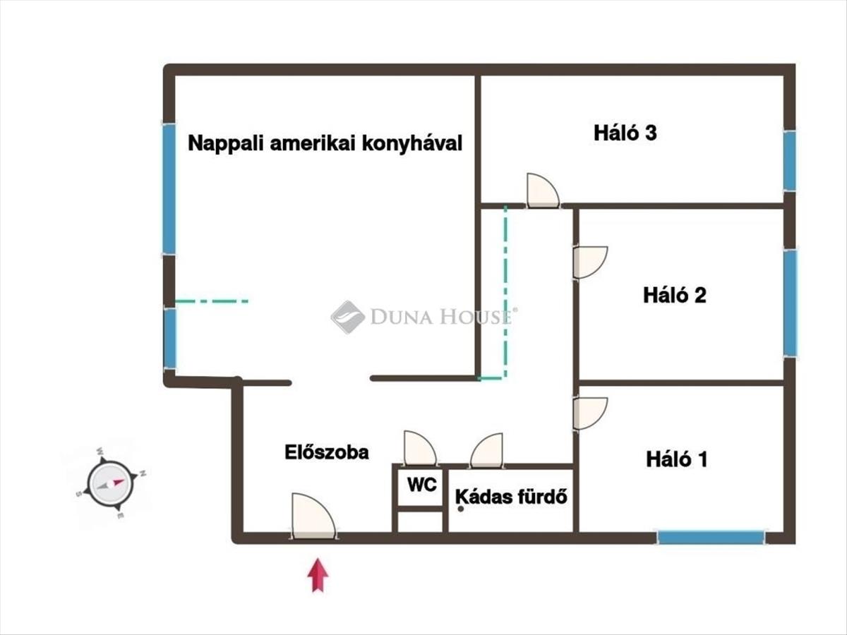 Az amerikai konyhás nappali mellett 3 külön nyíló, egymástól jól elszeparált, közel 12 nm -es hálószoba található.