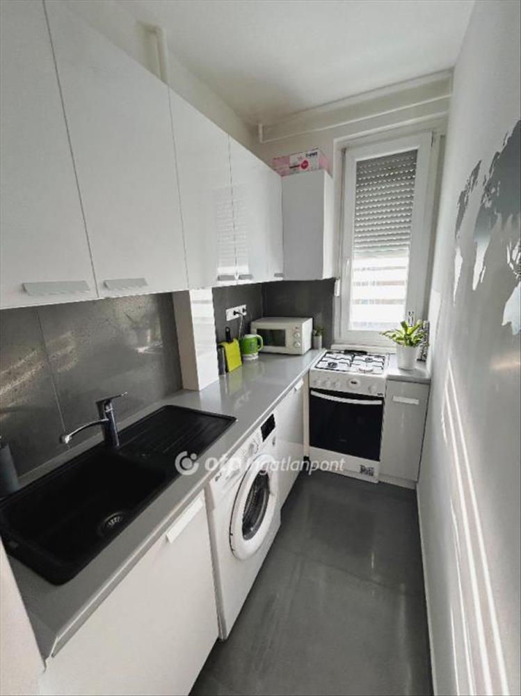 új burkolatokat, makulátlan állapotú csempézést, valamint egy modern, új konyhabútort.