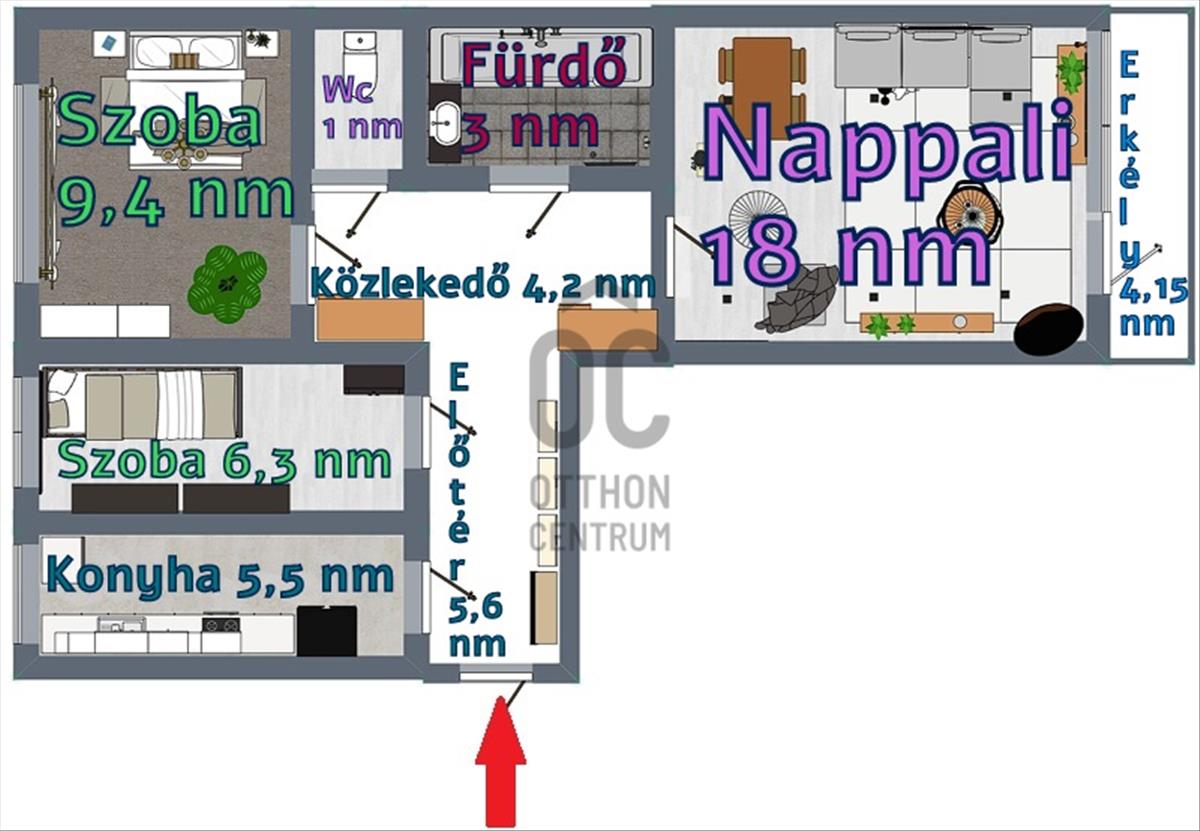 • Alapterület:57 m2
