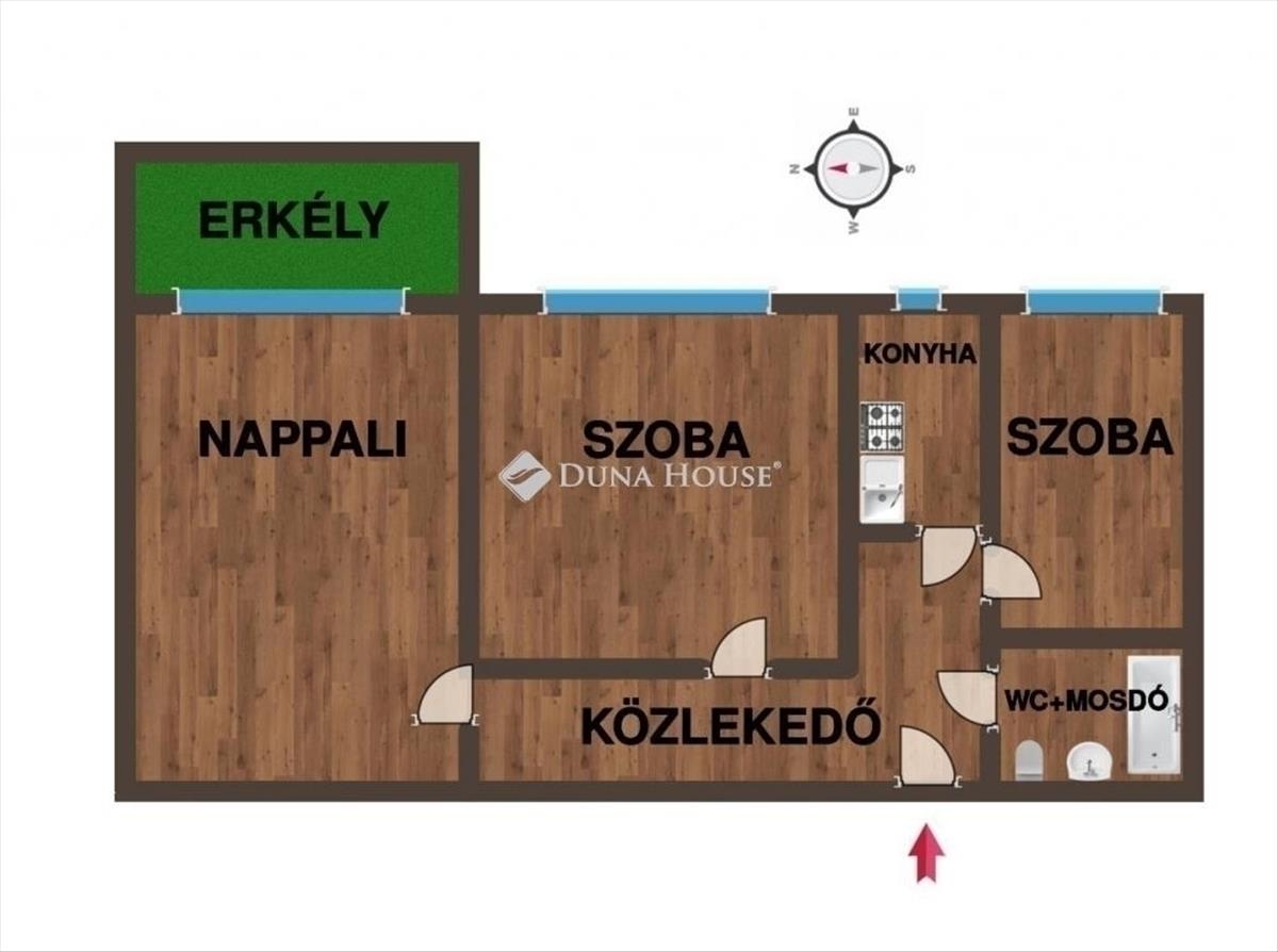 52 m² hasznos alapterület + 5 m² loggia +8 m² tároló