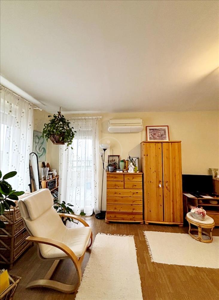 A napfényes, keleti fekvésű ingatlan 1 szoba - klímával felszerelt, tágas, ablakos konyha/étkező, fürdőszoba, külön mellékhelyiség, előszoba elosztású.