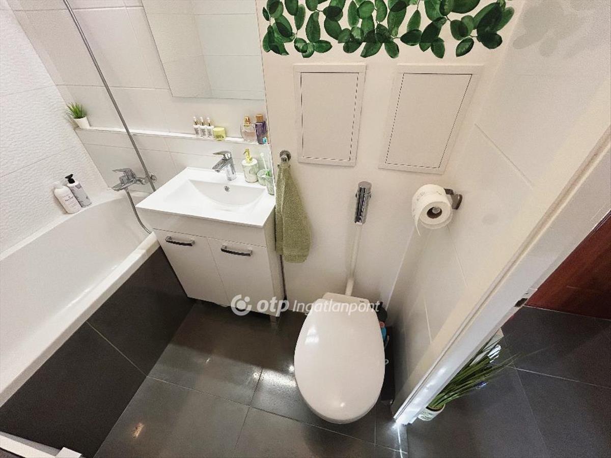 új burkolatokat, makulátlan állapotú csempézést, valamint egy modern, új konyhabútort.