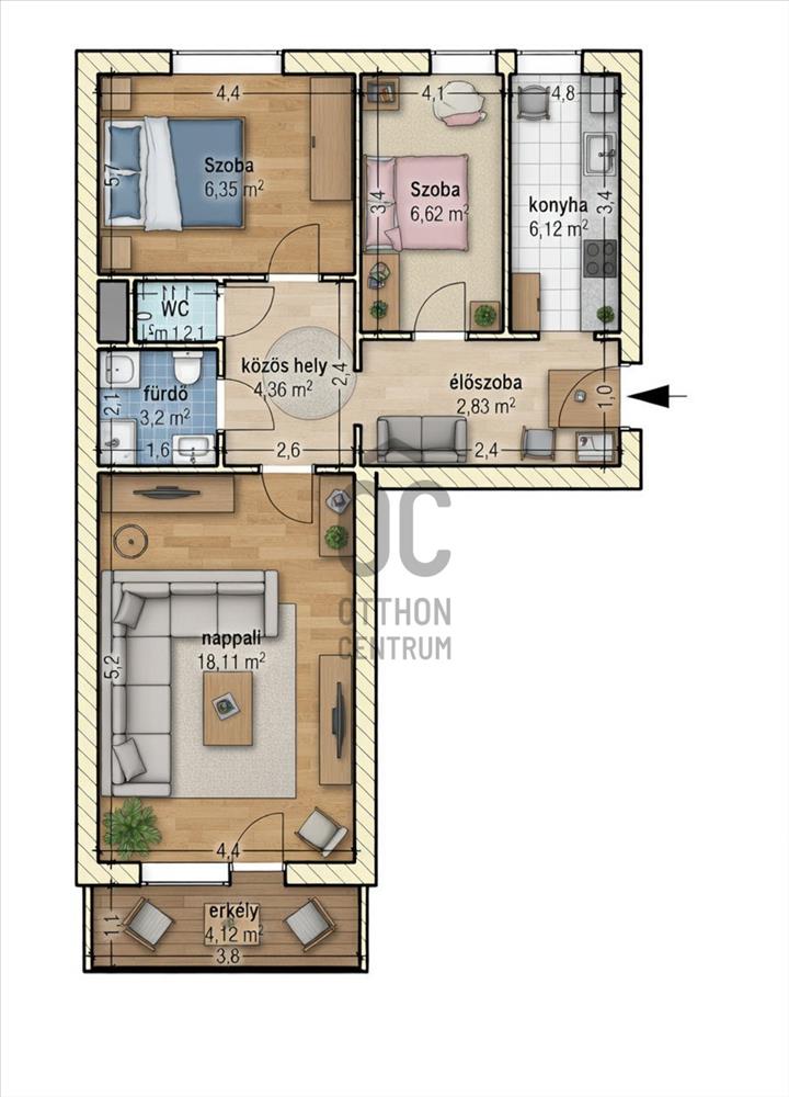 - Alapterület:58 m2