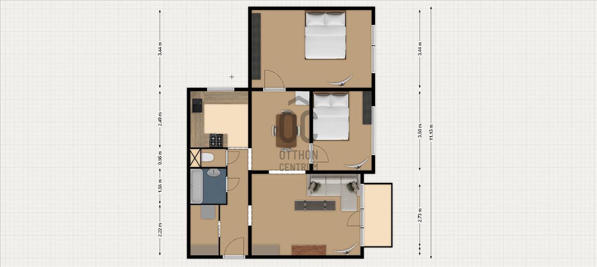 amely 2, 5 szobával és külön étkezővel, ablakos konyhával kínál kényelmes életteret.