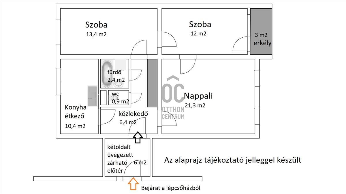 - nettó 68, bruttó 76 négyzetméter a bejárat előtti zárható helyiséggel és az erkéllyel