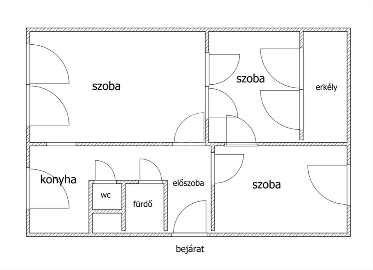 A 3 szobás ingatlan 65 nm alapterületű, praktikus elosztású: tágas nappali, két külön nyíló hálószoba, konyha, fürdőszoba, külön wc és erkély, jó tájolású, két irányba is kilátással rendelkezik, igazán világos.