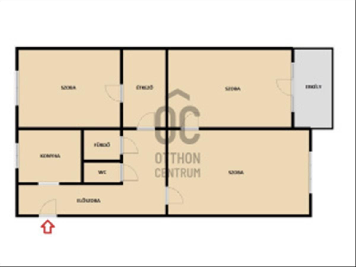 - 2 külön nyíló szoba, a 3. a másik kettőből nyílik