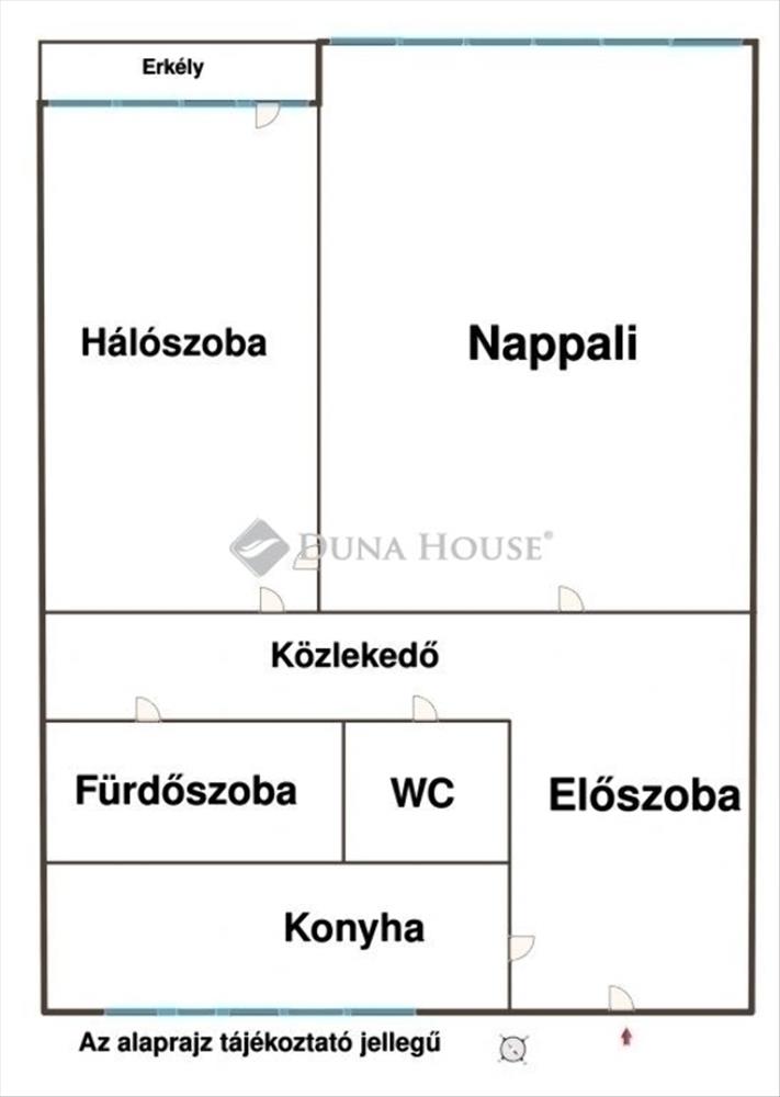 Elrendezése: Nagy nappali, hálószoba (melyből a kb. 3 Nm-es erkély is nyílik), konyha, mely ablakkal rendelkezik a belső udvarra, továbbá fürdő, külön wc és közlekedő.
