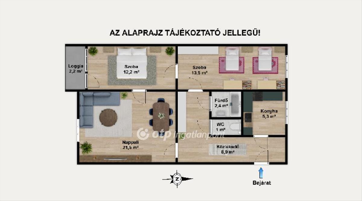 A tágas, Déli tájolású nappali a lakás központi része. a két hálószoba külön bejáratú, így jól használható családoknak vagy akár lakótársaknak is. a lakásban külön wc és fürdőszoba található, így a reggeli sorban állás is könnyedén elkerülhető.