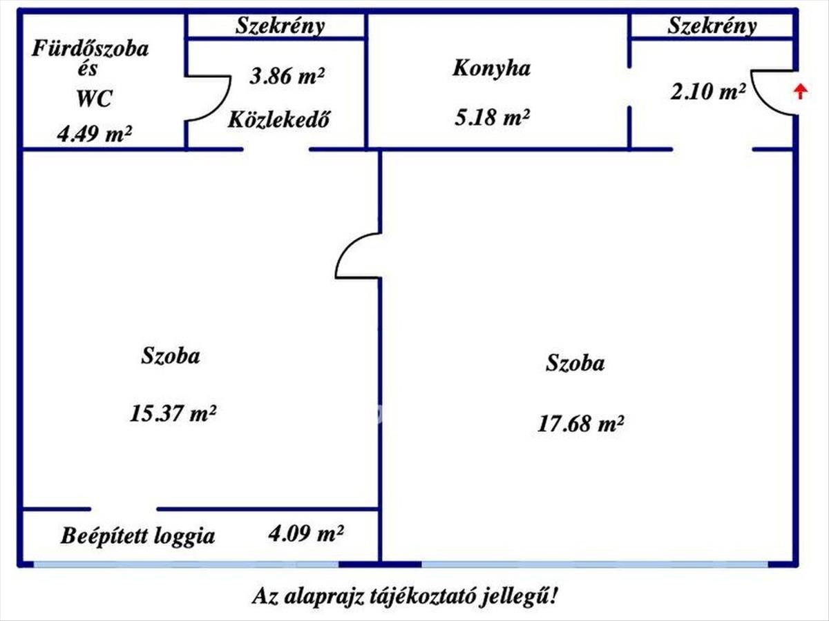 Az 50 négyzetméteres lakás kialakítása átgondolt és praktikus. Nincs felesleges tér, minden helyiség jól használható. a felújítás során a teljes víz- és elektromos hálózat cseréje megtörtént, valamint amperbővítés is történt.