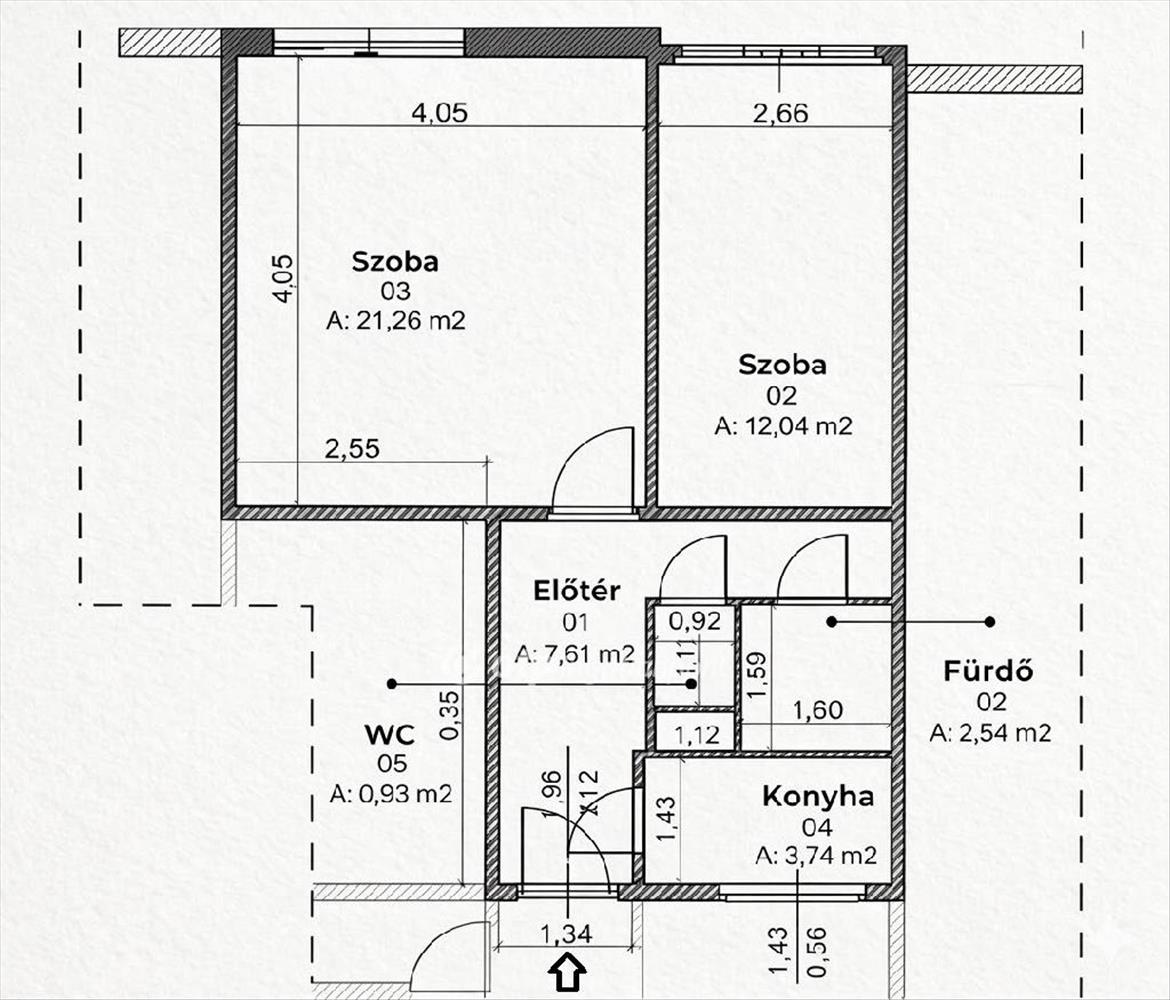 A lakásba belépve egy praktikus, L alakú előtérbe érkezünk, ahonnan minden helyiség külön megközelíthető. Jobbra található a világos konyha, valamint a különálló wc és fürdőszoba. a közlekedő végén helyezkedik el a két tágas szoba; a kisebbik szobából közvetlen kijárás nyílik a nyugati fekvésű loggiára, amely ideális helyszín az esti kikapcsolódáshoz.