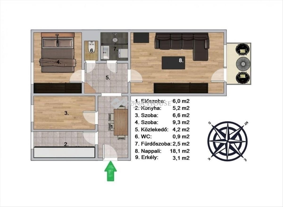 - Tájolás:ÉNY