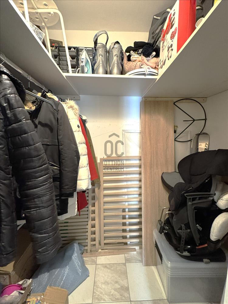 - Remek elosztásának köszönhetően jól szeparált helyiségekkel rendelkezik, mindemellett nagy méretű gardrób és kamra is rendelkezésünkre áll.