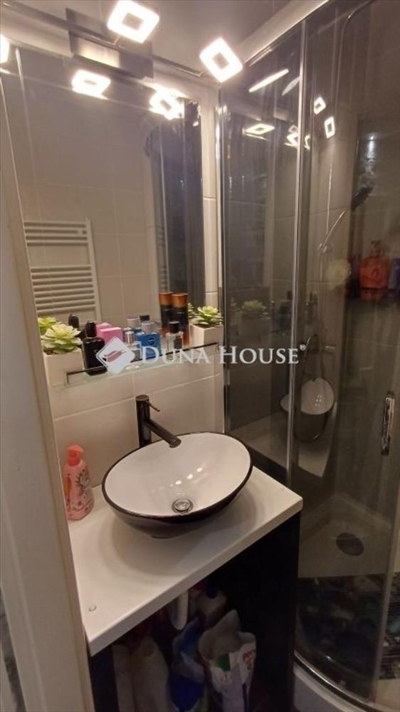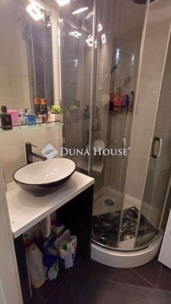 A külön helyiségekben elhelyezkedő zuhanykabinnal ellátott fürdőszoba, valamint a wc is igényesen felújított.