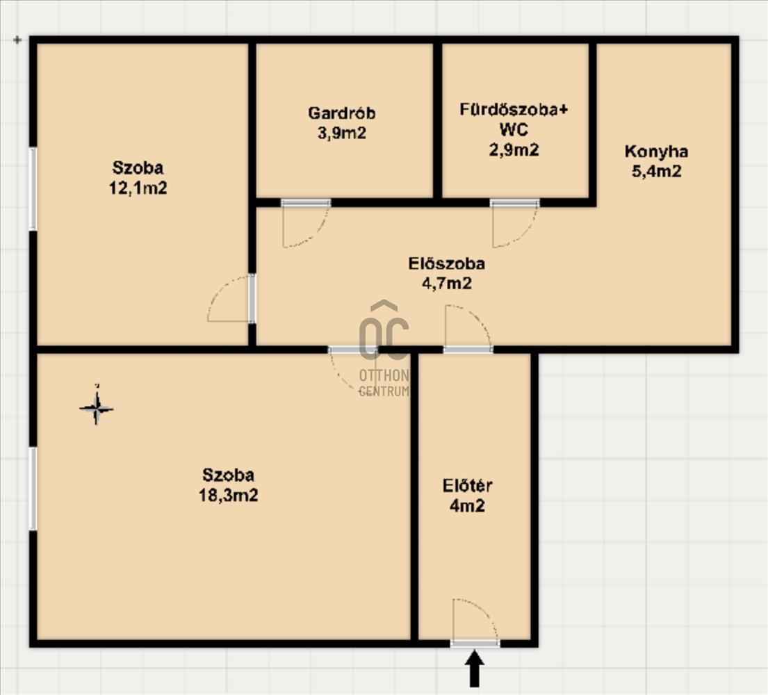 Tulajdoni lapon 47m2, de a bejárat előtti zárt folyosó résszel, 4m2-rel lett megnövelve.