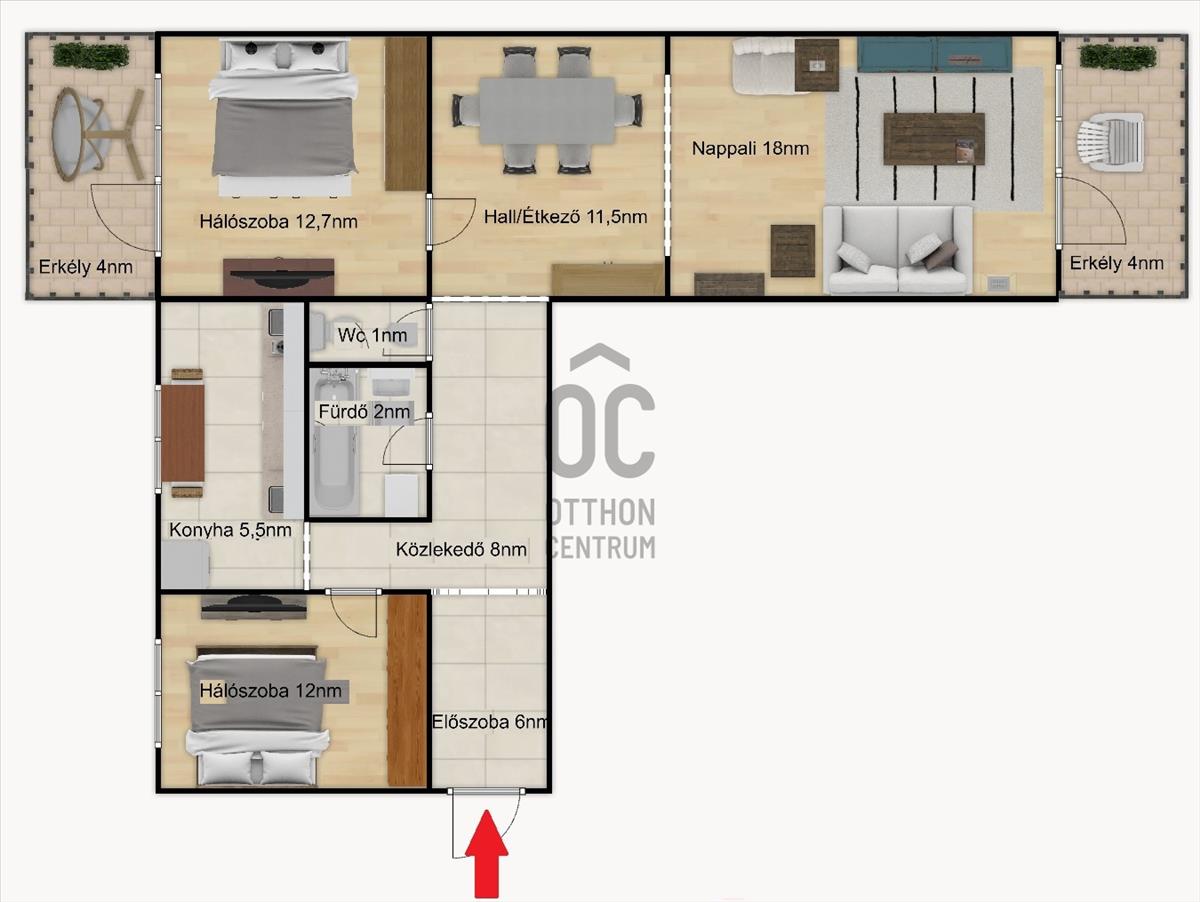 + Nappali + 2 hálószoba vár itt rád, ahol még egy étkező is ki lett alakítva a hallban.