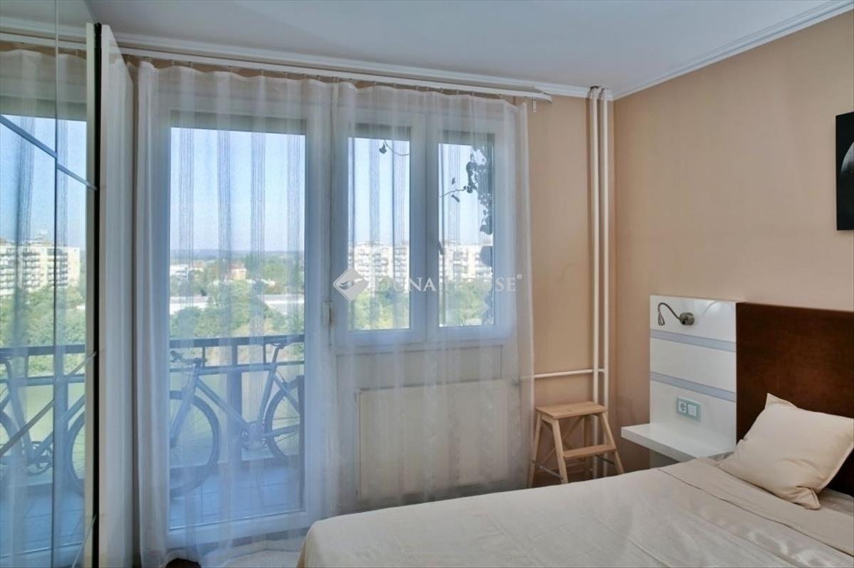Panorámás, két erkélyes, felújított otthon egy hatalmas zöld liget felett. . . For English version please scroll down. . . Elhelyezkedés - Zöld, nyugodt környezet kiváló közlekedésselBudapest XV. kerületében, Újpalota szívében, a Páskomliget utcában kínálunk megvételre egy igényesen felújított, 70 m²-es, 3 szobás, étkezős lakást. a házat csendes, parkos környezet öleli körül, a kilátás pedig páratlan: a tágas erkélyről a zöld parkon át egészen a fóti templomig ellátni. a környék családbarát, biztonságos, minden megtalálható pár perc sétán belül vásárcsarnok, boltok, gyógyszertár, pékség, bölcsőde, óvoda, iskola, valamint a Pólus Center és az Ázsia Center is könnyen elérhető. Az otthon - Tágas terek, világos szobák, dupla erkélyA lakás a 9. emeleten helyezkedik el, kiváló elosztású, minden helyiség kényelmes méretű és természetes fénnyel teli. a nappali és a két hálószoba jól berendezhető, mindegyikben kényelmesen elfér egy nagyobb ágy és a további pakoláshoz szükséges bútorok. a két erkély külön irányba néz az egyik a parkra és a dombságra, a másik a Páskomliget utcára, így bármikor élvezhető a kilátás és a friss levegő. a nagy ablakos, külön konyha világos és jól szellőztethető, étkezős elrendezésének köszönhetően igazi családi tér. a lakáshoz tartozik egy zárható, ráccsal (a rácson lopásvédelem csökkentésére elhelyezett tűzálló borítással) leválasztott folyosórész, ami ideális bicikli, babakocsi vagy sportfelszerelés tárolására. Műszaki állapot - Gondosan karbantartott, modern megoldásokA lakás kitűnő állapotban van, az elmúlt évek során teljes felújításon esett át:- minden villanyvezeték cserélve lett (falba süllyesztve, vezetékcsatorna nélkül)- új műanyag redőnyös külső nyílászárók- beltéri ajtók szintén cserélve- két Fisher hűtő-fűtő klíma gondoskodik a nyári kényelemről- szobák laminált padlósak, a többi helyiség kerámiaburkolatos- festhető üvegszálas tapéta borítja a falakat, ami esztétikus és tartós megoldás- a radiátorokra egyedi mérőórák kerülnek felszerelésre a következő fűtési szezon előttAz ingatlan tehermentes, 1/1 tulajdonban van, így azonnal birtokba vehető. a társasház - Rendezett és folyamatosan karbantartottA ház akadálymentesített, a park felőli bejárat teljesen felújított. Nemrégiben megújult a lépcső és a liftvezérlés. a lakóközösség csendes, kulturált. a tömegközlekedés kiváló: a közelben 7, 7e, 8e, 108e, 133e, 46, 96, 196, 196a, 296, 296a buszok és a 69-es villamos megállói mind pár perc sétára találhatók, így a belváros 15-30 percen belül elérhető. Autóval gyorsan megközelíthető az M0-s körgyűrű és az M3-as autópálya is. a parkolás a ház környékén díjmentes. Ez a két erkélyes, panorámás lakás egyaránt ideális választás családoknak, első lakást kereső fiatal pároknak vagy befektetésnek is. Világos, jól szellőző, igényesen felújított otthon egy zöld, barátságos környéken ahol minden karnyújtásnyira van. Renovated home with two balconies and panoramic views over a breathtaking green parkLocation Green, peaceful area with excellent transport linksIn the heart of Újpalota, District XV. Of Budapest, on Páskomliget Street, we offer for sale a tastefully renovated 70 m², 3-room apartment with a dining area. The building is surrounded by a quiet, park-like environm ent, and the view is truly unique: from the spacious balcony, you can see across the lush greenery all the way to the Fót church. The neighborhood is family-friendly and safe, with all amenities just a short walk away market hall, shops, pharmacy, bakery, nursery, kindergarten, and school. Pólus Center and Asia Center shopping malls are also easily accessible. The Home bright rooms, spacious layout, double balconyLocated on the 9th floor, the apartment has an excellent floor plan, with every room offering generous space and plenty of natural light. The living room and two bedrooms are easy to furnish each can comfortably accommodate a large bed and additional furniture. The two balconies face different directions: one overlooks the park and the nearby hills, the other faces Páskomliget Street, so you can enjoy the view and fresh air at any time. The large, windowed kitchen is bright and well-ventilated, and its dining layout makes it a true family space. The property also includes a separate, lockable corridor section with a grille (equipped with a fireproof cover for extra theft protection), ideal for storing bicycles, baby strollers, or sports equipment. Technical condition carefully maintained with modern featuresThe apartment is in excellent condition, having undergone a complete renovation in recent years:- All electrical wiring has been replaced (concealed in the wall, without surface cable channels)- New exterior doors and windows with plastic frames and roller shutters- All interior doors replaced- Two Fisher air conditioners provide cooling and heating comfort- Laminate flooring in the rooms; ceramic tiles in other areas- Walls covered with paintable fiberglass wallpaper aesthetic and durable- Individual heat meters will be installed on the radiators before the next heating seasonThe property is unencumbered and has a single owner (1/1 ownership), allowing immediate occupancy. The building Well-maintained and continuously cared forThe condominium is accessible for people with reduced mobility, and the entrance facing the park has been completely renovated. The staircase and elevator control system have been recently renewed. The residents are quiet and respectful. Public transport connections are excellent: buses 7, 7e, 8e, 108e, 133e, 46, 96, 196, 196a, 296, 296a and tram 69 all have stops within a few minutes walk, providing direct access to the city center within 1530 minutes. B