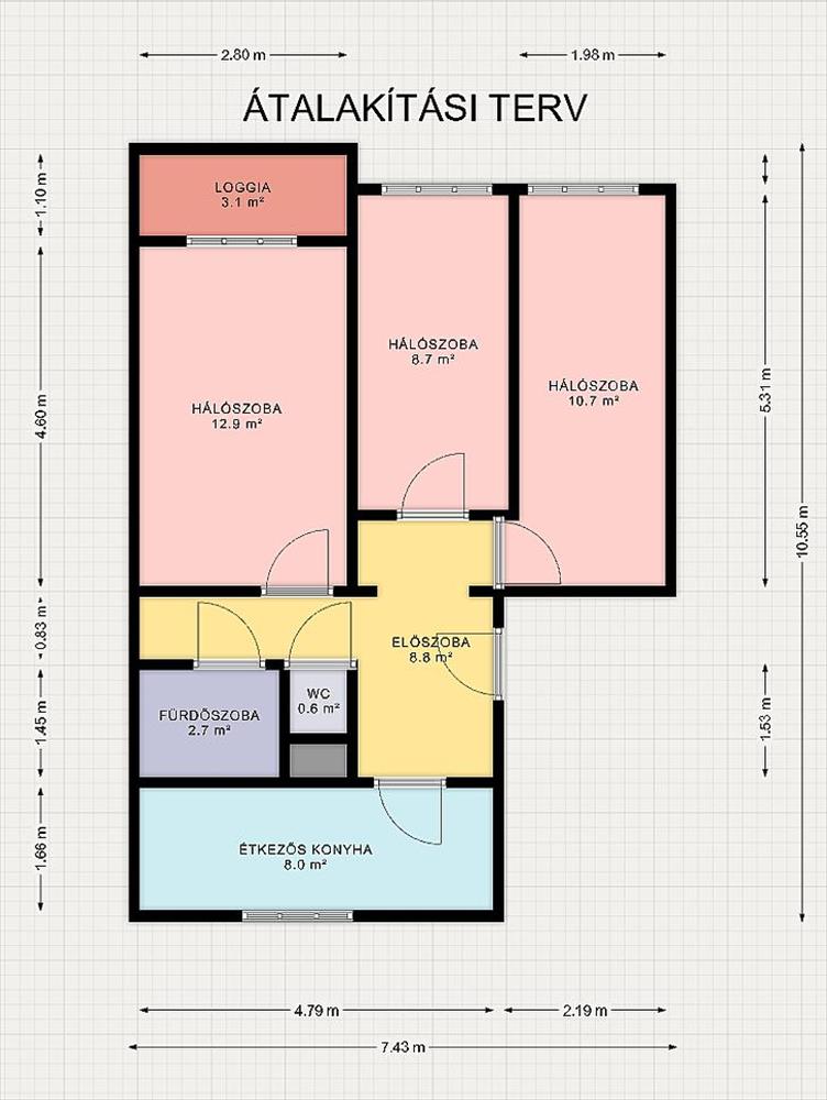 A jelenlegi alaprajz kiváló, az átalakítási lehetőség adott – egy modern, 3 szobás, étkezős konyha elrendezésű könnyen megvalósítható, amely jelentősen növeli a komfortot és az értéket.