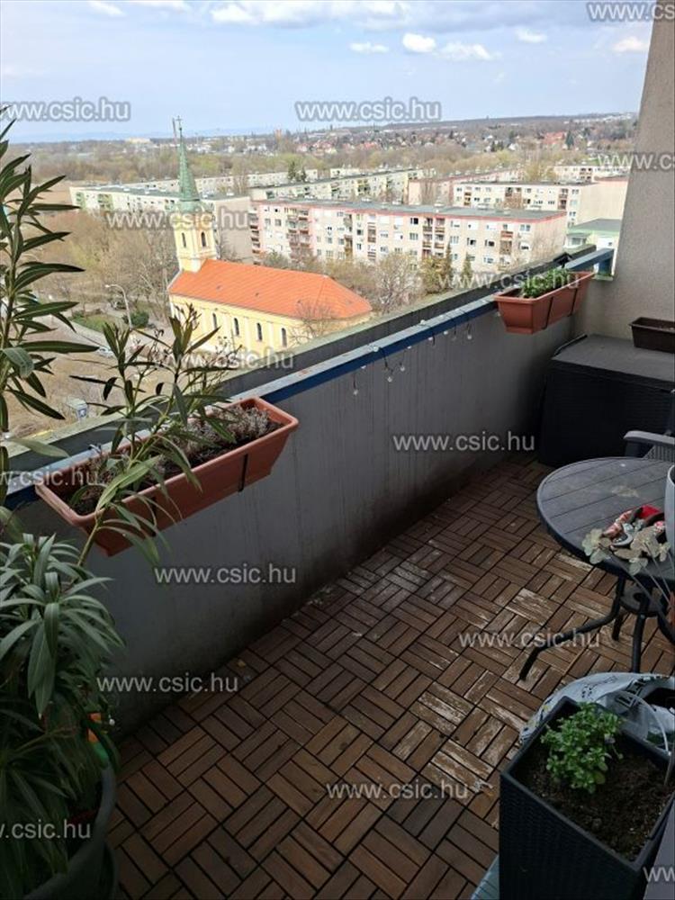XVII. kerület Rákoskeresztúron eladó egy 9. emeleti panorámás, kilátással a Gellért-hegyre, fiatalos, otthonos lakás.