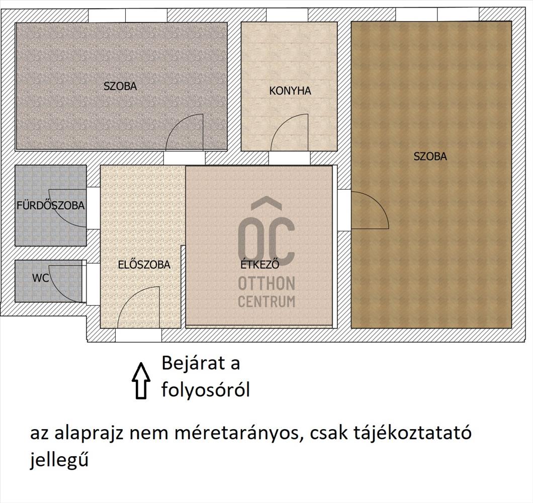 A lakás két különnyíló szobával rendelkezik, melyek közül az egyik parkettával, a másik szőnyegpadlóval burkolt.