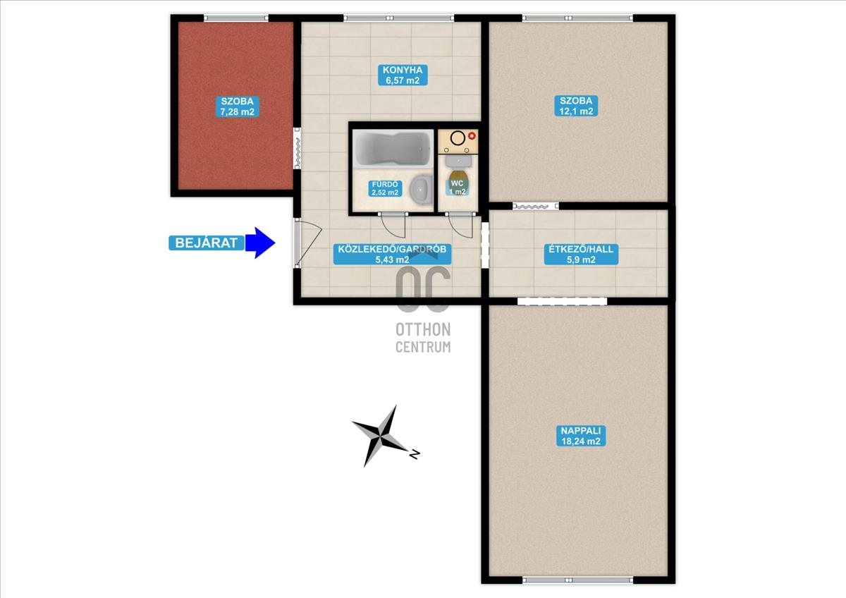 Eladó egy 10. emeleti, nem zárószinti, 60 m²-es, 3 szoba + hal...