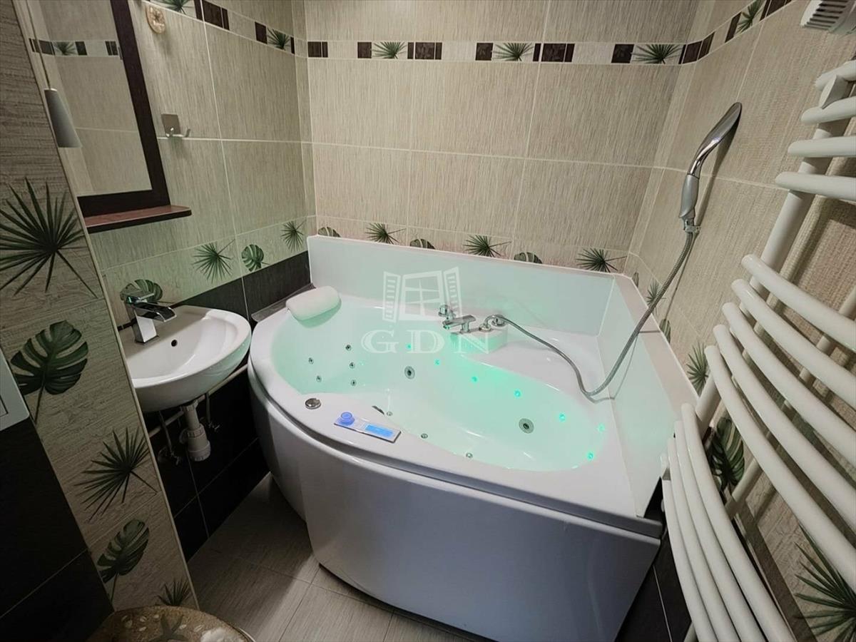 A különálló konyha modern és igényes, a konyhabútor kiváló állapotban van, beépített sütővel és indukciós főzőlappal felszerelt, emellett új mikrohullámú sütő és egy jó állapotú mosógép is helyet kapott. a fürdőszoba új csapteleppel, valamint egy hidromasszázs káddal rendelkezik, amely hangulatvilágítással és rádióval is felszerelt, így a mindennapok kényelmét emeli.