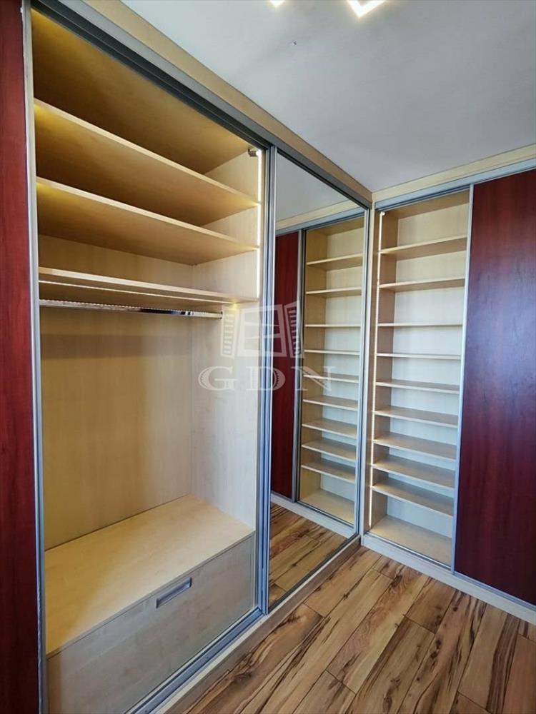 A nagyobb szobában hűtő-fűtő klíma gondoskodik az egész éves komfortérzetről, míg a kisebbik szoba jelenleg gardróbszobaként funkcionál, egyedi beépített szekrényekkel, amelyek mozgásérzékelős világítással vannak ellátva, így kifejezetten praktikus és modern megoldást kínál.