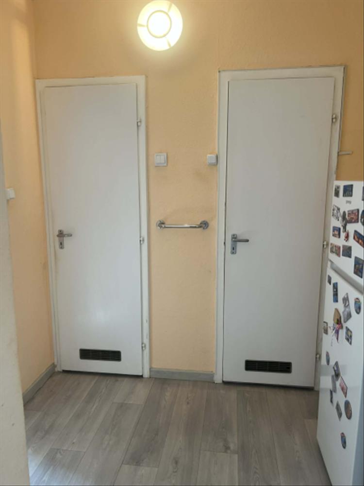 A bejárati ajtó biztonsági ajtó, a beltéri ajtók fa profilosak. a szobákban laminált parkettásak.