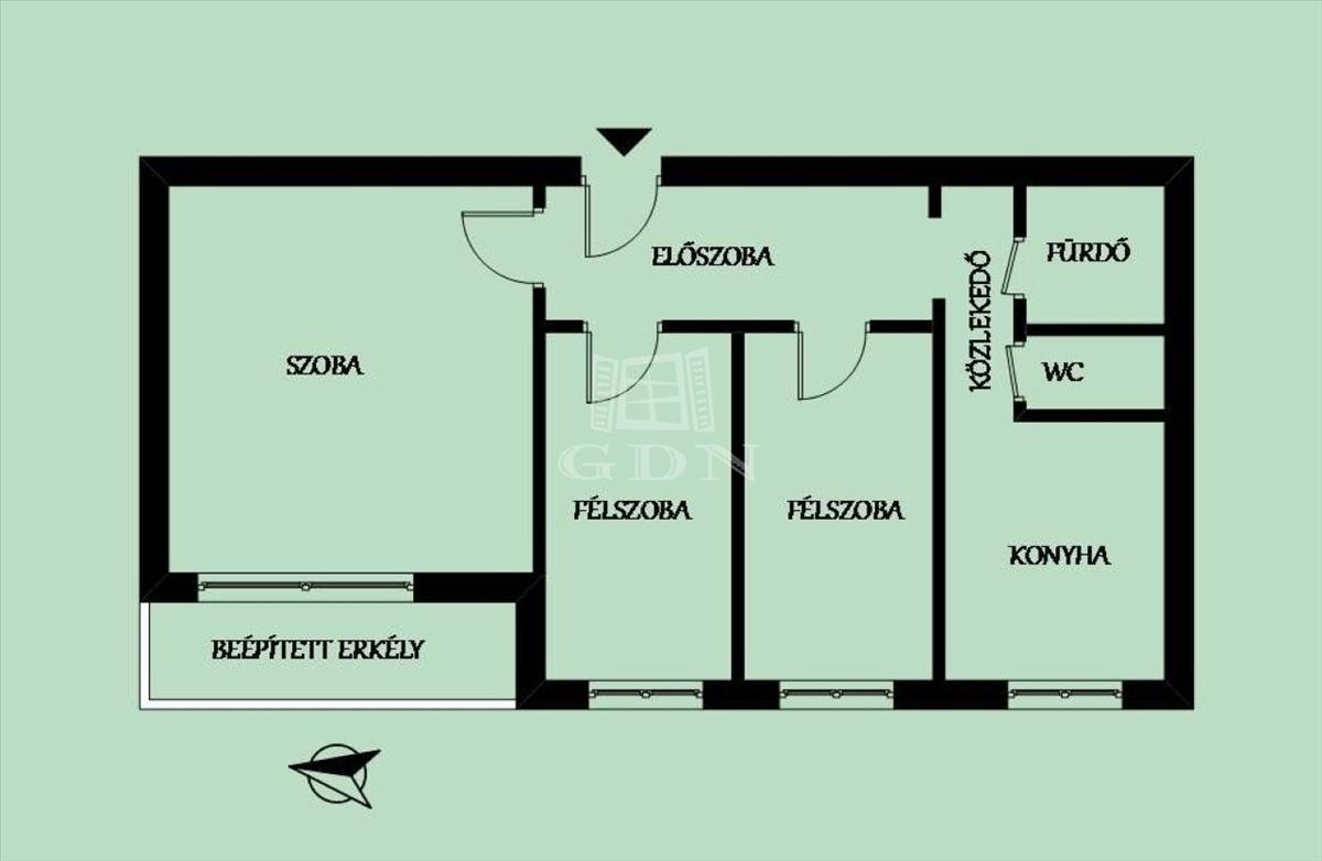 56 Nm, 1+2 szoba, beépített erkély, 54. 9 MFt.