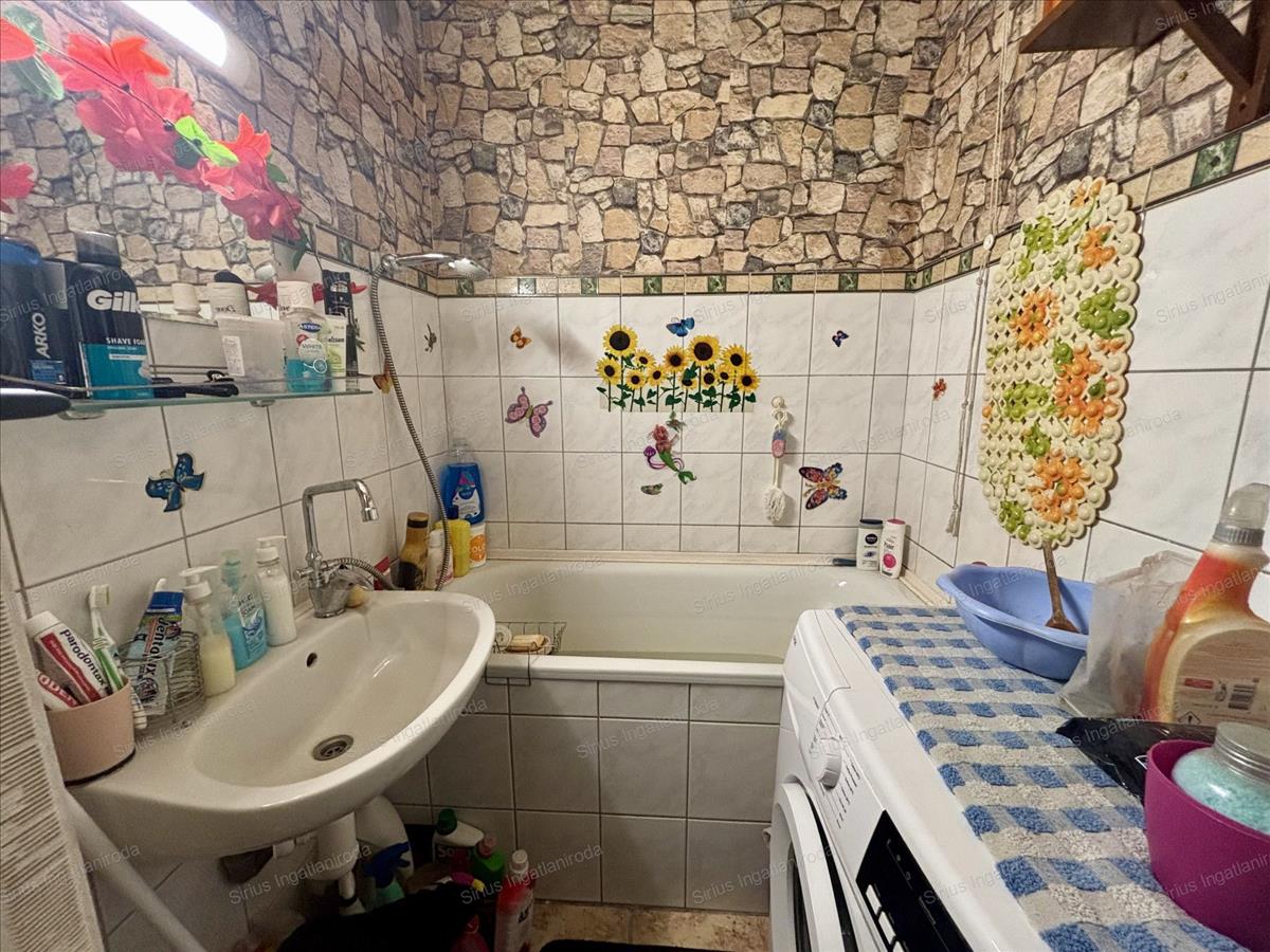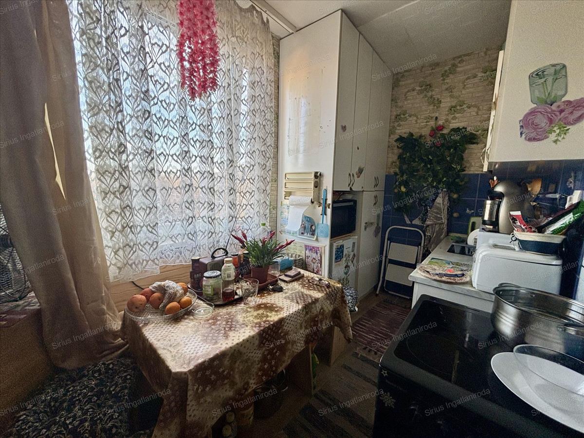 A konyha ablakos, a fürdőszoba és a wc külön helyiségben található, ami a mindennapi kényelmet szolgálja.