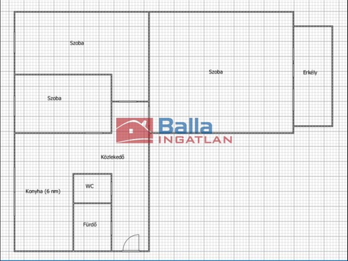 A lakás beosztása: közlekedő, konyha, 2 szoba, félszoba, erkély, fürdőszoba, Wc.