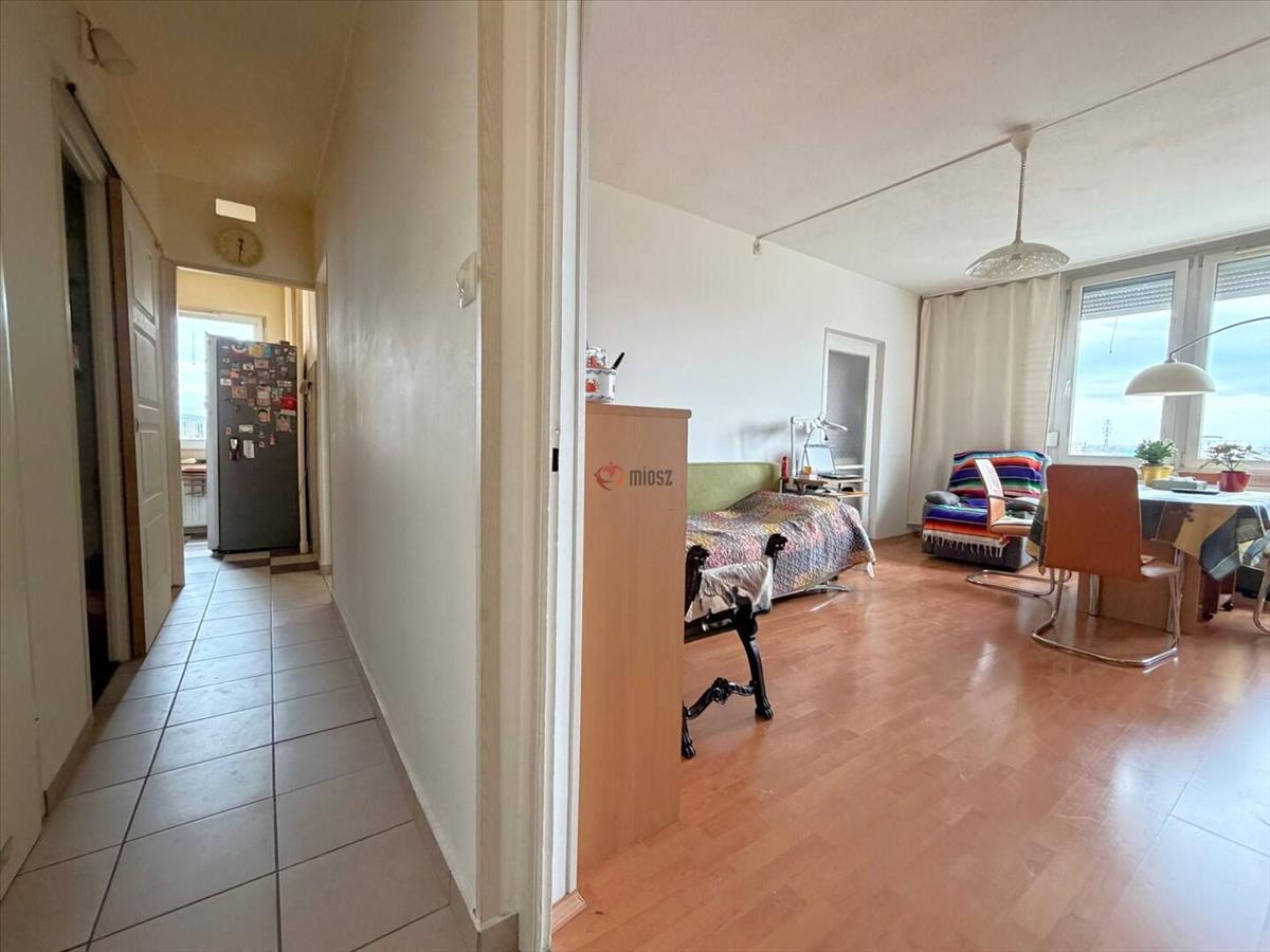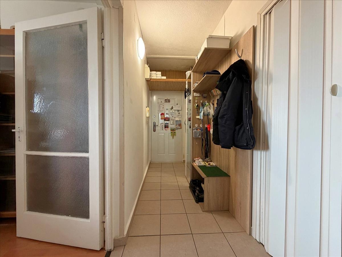 A lakásba lépve az előtérből nyílik a tágas nappali, a nappalival szemben a tárolóhelyiség. Tovább haladva a közlekedőn át a wc külön helyiségben található, a kádas fürdőszoba felújításon esett át.
