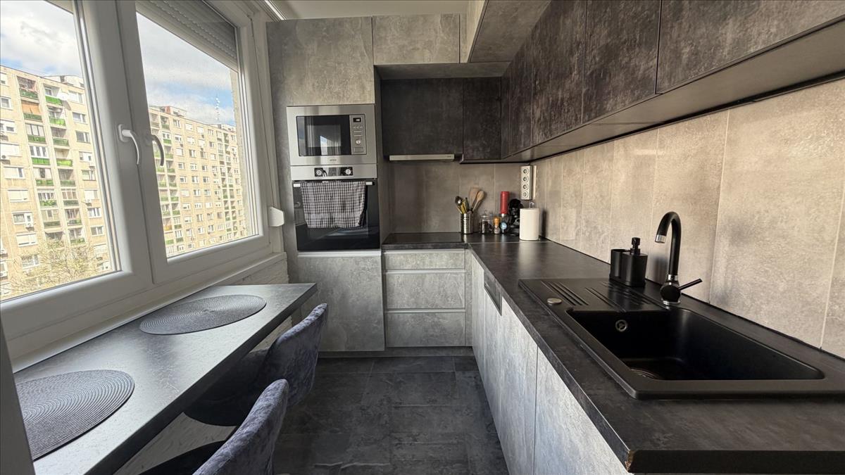 A konyha teljesen megújult, új, gépesített konyhabútorral felszerelt. a lakás rendkívül modern, ízlésesen kialakított, minden részletében igényes.