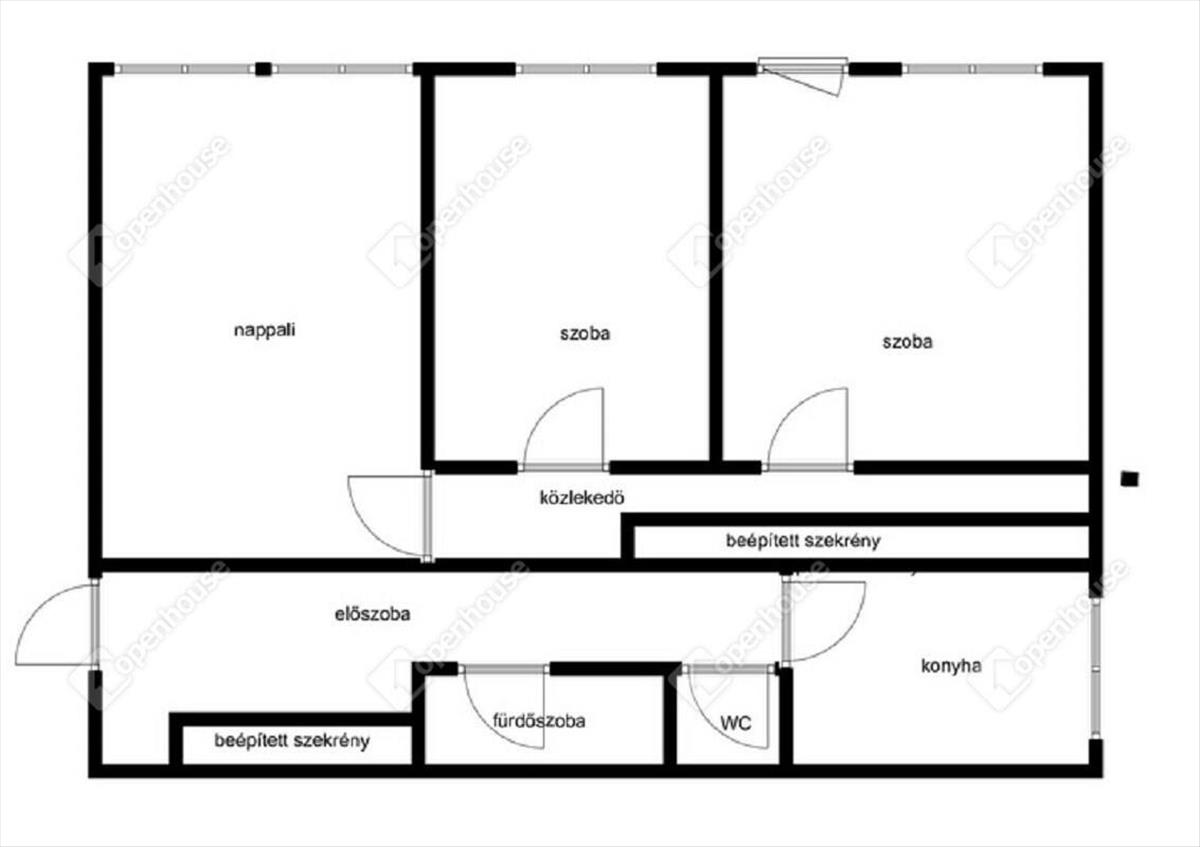 - a lakásban egy nappali, kettő szoba, konyha, közlekedő, előszoba, fürdőszoba, wc külön helységben található.