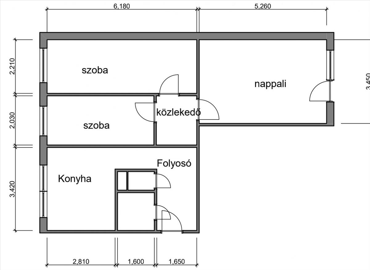 3 külön nyíló szoba
