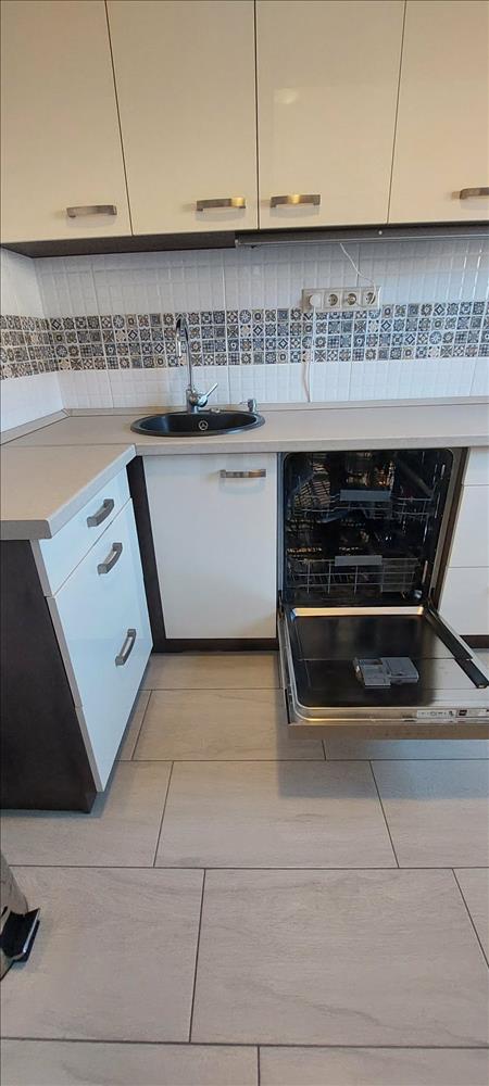 Konyhája modern, magasfényű bútorzata praktikus kialakítású, 12 terítékes mosogatógéppel ellátott.