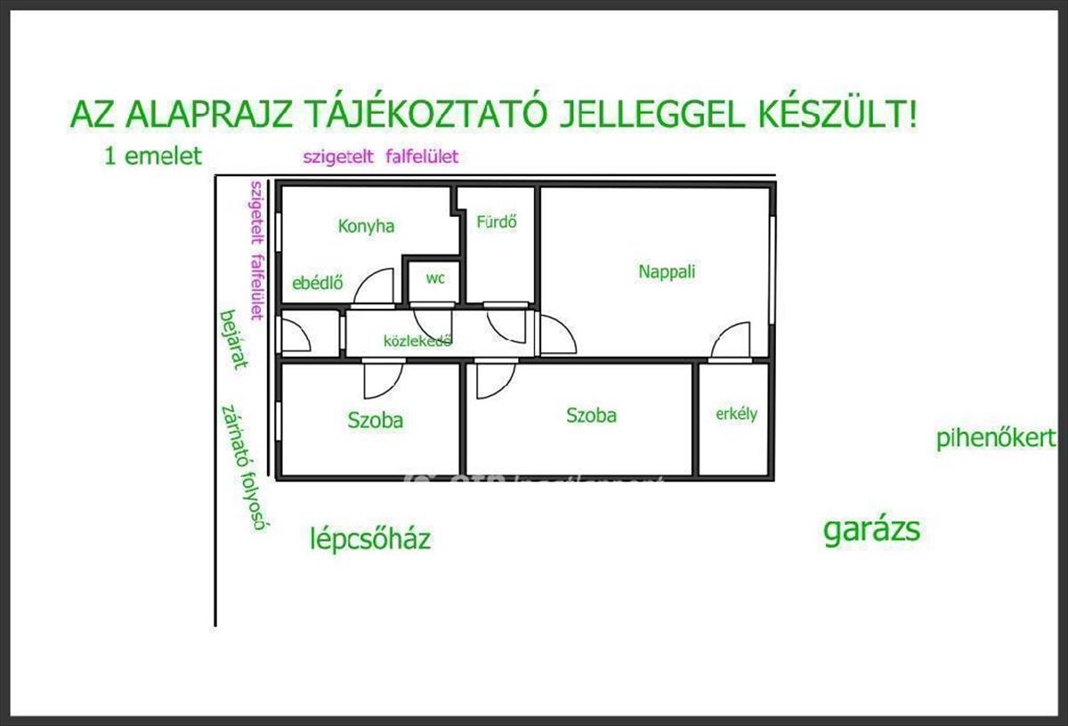 Emellett rendelkezik egy konyha- étkezővel, bejárat folyosó, valamint egy kényelmes fürdőszobával és külön WC-vel.