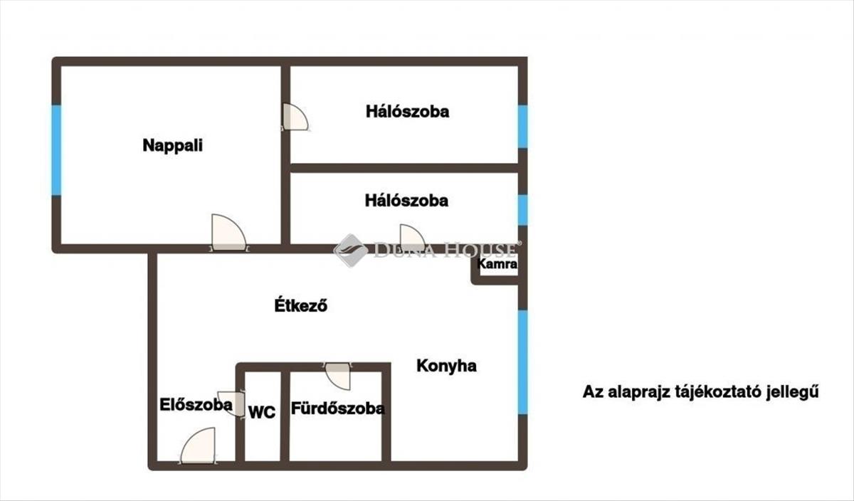 -nappali+2 hálószobás, étkező-konyhás, külön wc, fürdőszoba,