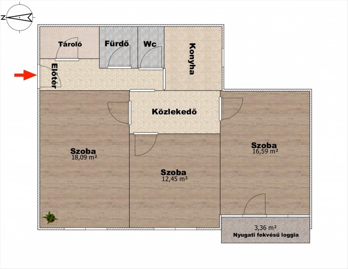 - 3 nyugati fekvésű szoba
