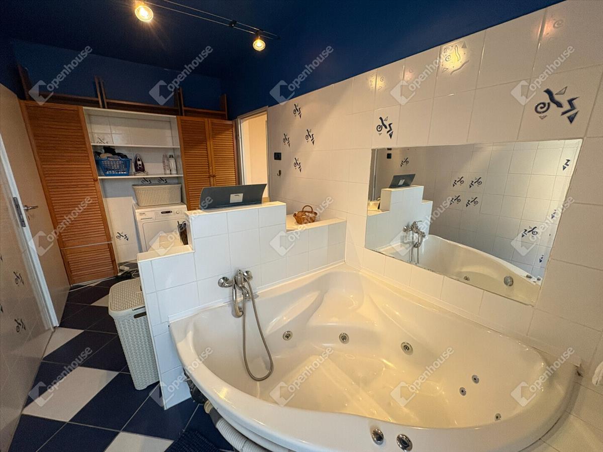 Szokásostól nagyobb fürdőszoba biztosítja a kényelmet.