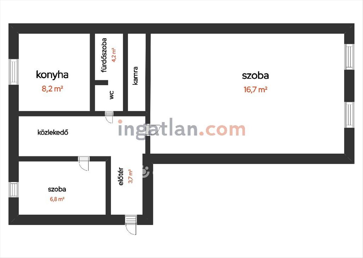 A lakás elrendezése: szobák külön nyílnak, a fürdő és a wc egy légtérben, de mégis külön van, a fürdőtől.
