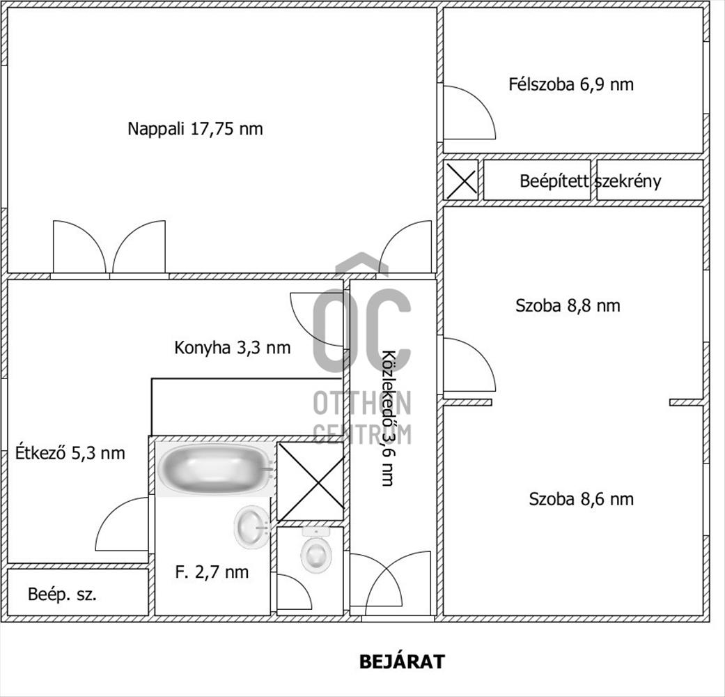 - fűtése távhővel történik, egyedi mérős elszámolással