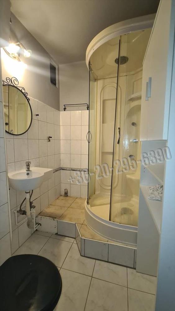 A fürdőszoba praktikus átalakításon esett át, így ma már kényelmes, zuhanyzós kialakítású, ami ízlés szerint felújítandó.