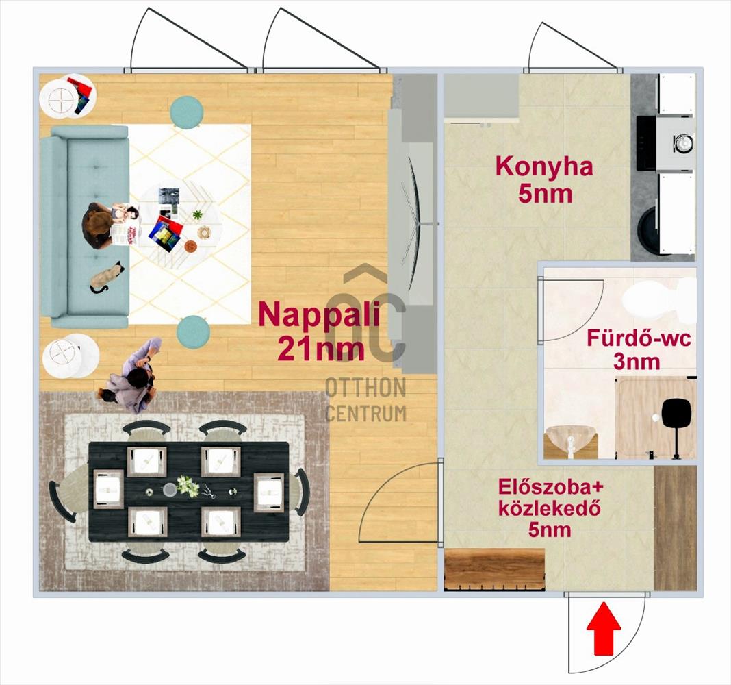 + 21nm-es nappali, ami akár átalakítható amerikai konyhás nappalivá, hogy másfél szobás lehessen.