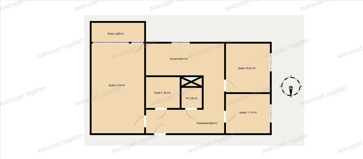 Elosztása: 3 hálószoba, konyha, fürdő, wc, közlekedő, erkély
