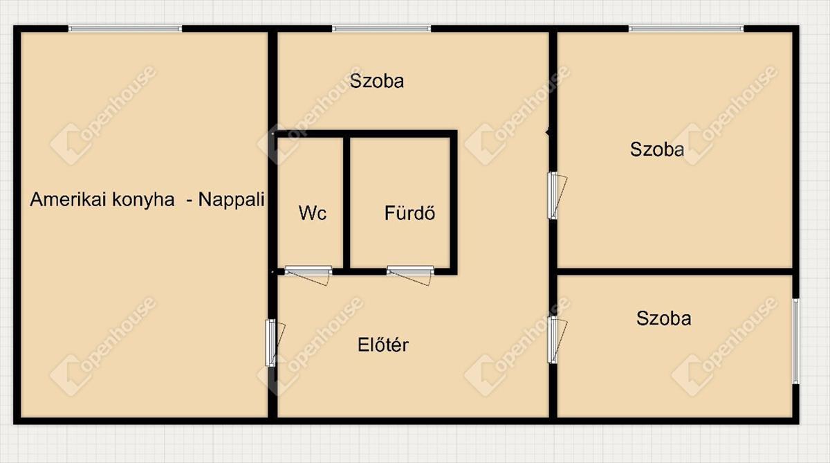 - nappali + 3 szoba ( amerikai konyhás - nappali )