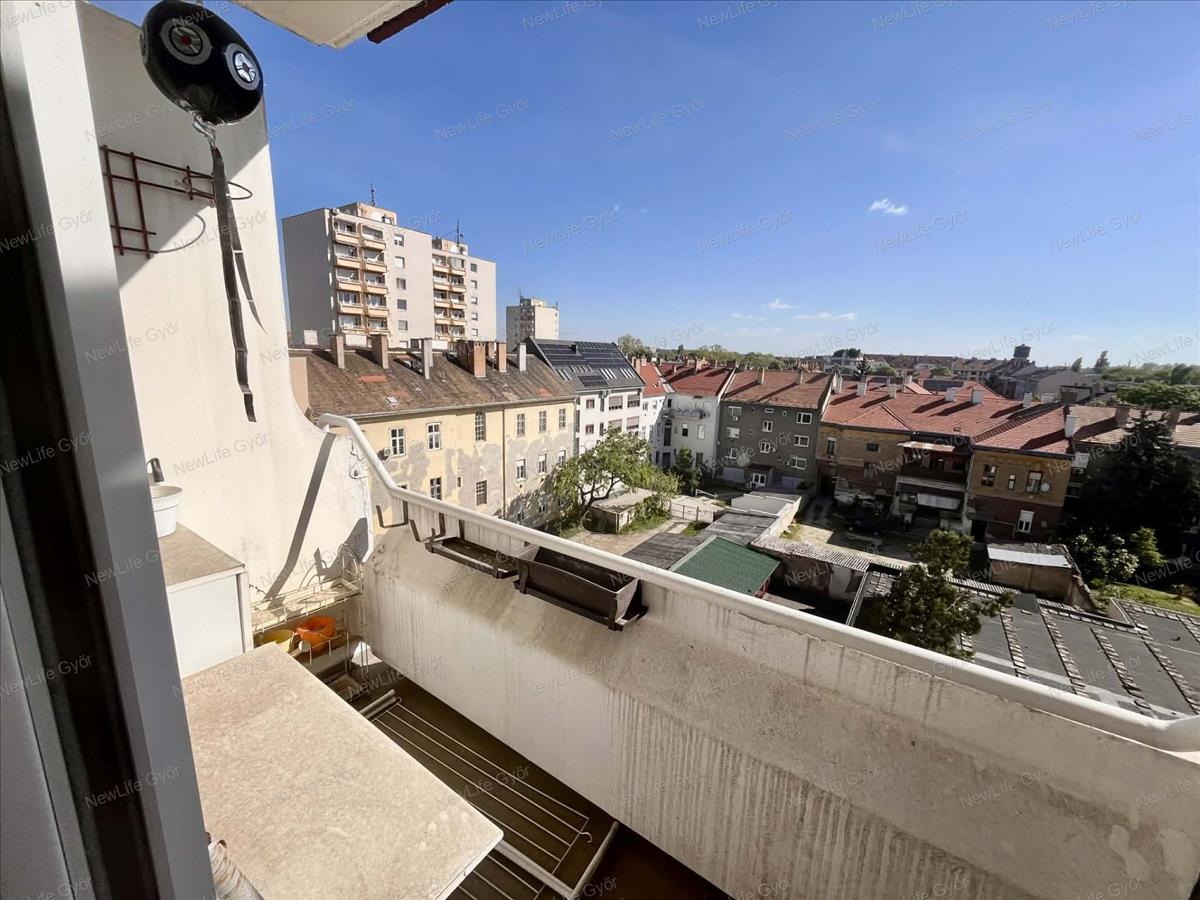 A nagyszobához egy erkély is tartozik, ahonnan szép kilátás nyílik a belvárosra. Ideális a reggeli kávézáshoz, vagy egy könnyű nyári vacsora elfogyasztására.