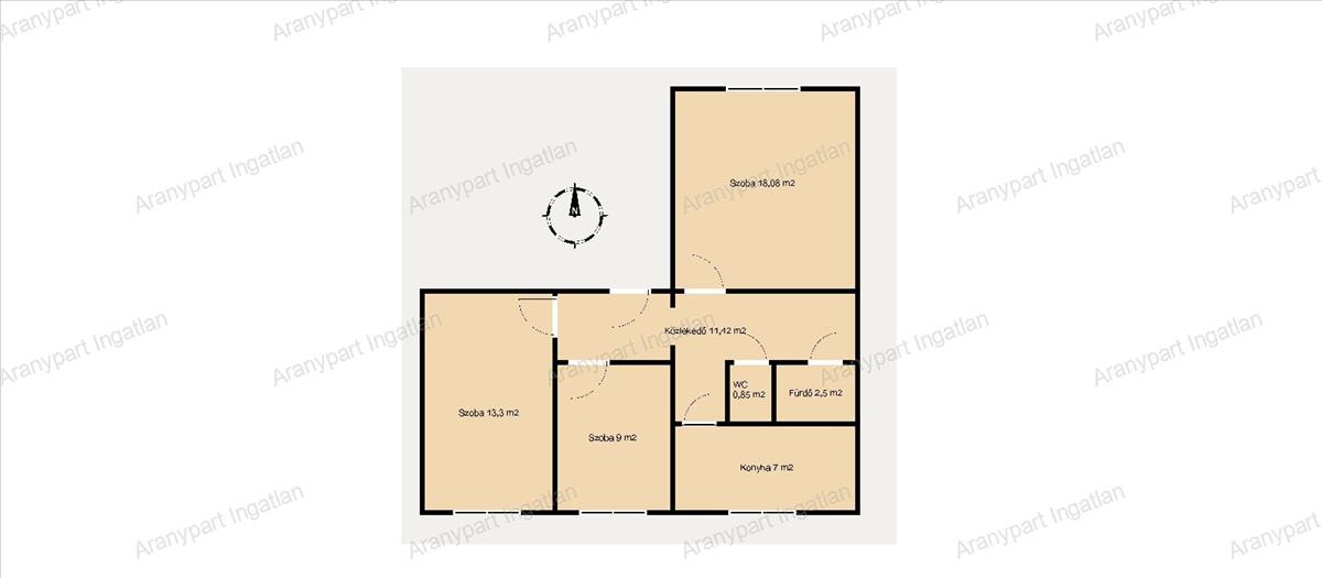 Elosztása: 3 szoba, konyha, fürdő, wc, közlekedő